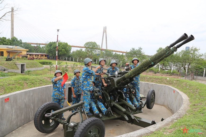 Sau lời giới thiệu của đồng chí Chính ủy Trung đoàn, chúng tôi được tham quan buổi huấn luyện phương án đánh địch đổ bộ đường không của Đại đội 171. Ngay sau hồi kẻng báo động, cả trận địa sôi sục khí thế, rền vang những khẩu lệnh dõng dạc, to rõ của người chỉ huy, cùng với đó là những động tác nhanh chóng, thuần thục, dứt khoát của các pháo thủ. Dưới sự chỉ huy của cán bộ huấn luyện, các số trong từng khẩu đội đã có sự phối hợp nhịp nhàng. Chỉ trong thời gian ngắn, các vị trí pháo thủ nhanh chóng bắt chính xác mục tiêu về hướng, tầm, cự ly, tốc độ, góc lên xuống, sẵn sàng nhả đạn tiêu diệt mục tiêu.