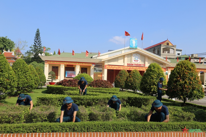 Chiến sĩ Trung đoàn 240 chỉnh trang khuôn viên đơn vị chào mừng ngày truyền thống Đoàn Thành Tô anh hùng.