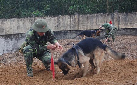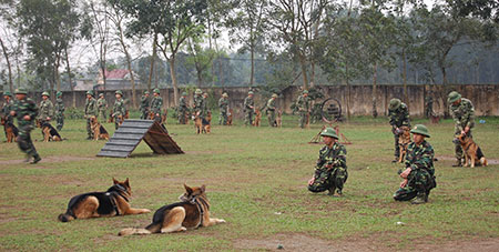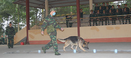 QĐND Online - Trường Trung cấp 24 Biên phòng là trường duy nhất trong toàn quân đào tạo huấn luyện viên, sử dụng chó nghiệp vụ, làm nhiệm vụ sẵn sàng chiến đấu, trực tiếp chiến đấu, đấu tranh với các loại tội phạm, tìm kiếm cứu nạn, canh gác, bảo vệ mục tiêu chính trị, quân sự... Trong những năm qua, nhà trường đã quán triệt và thực hiện nghiêm túc các chỉ thị, mệnh lệnh huấn luyện chiến đấu, trên cơ sở đó, xây dựng kế hoạch, tổ chức ra quân huấn luyện và triển khai huấn luyện bảo đảm đủ nội dung, thời gian. Điểm nổi bật là thường xuyên tổ chức huấn luyện SSCĐ, phối hợp với các tỉnh, thành phố trong việc tuần tra, bảo vệ biên giới, trực tiếp chiến đấu bảo vệ các mục tiêu thường xuyên cũng như đột xuất; tham gia tìm kiếm cứu nạn; đánh bắt tội phạm buôn bán vận chuyển ma túy có vũ trang vận chuyển qua biên giới; tham gia diễn tập khu vực phòng thủ tỉnh tại các tỉnh Quảng trị, Điện Biên, Lai Châu, tham gia diễn tập ứng phó động đất, tìm kiếm cứu nạn tại Bắc Trà Mi, tỉnh Quảng Nam...
