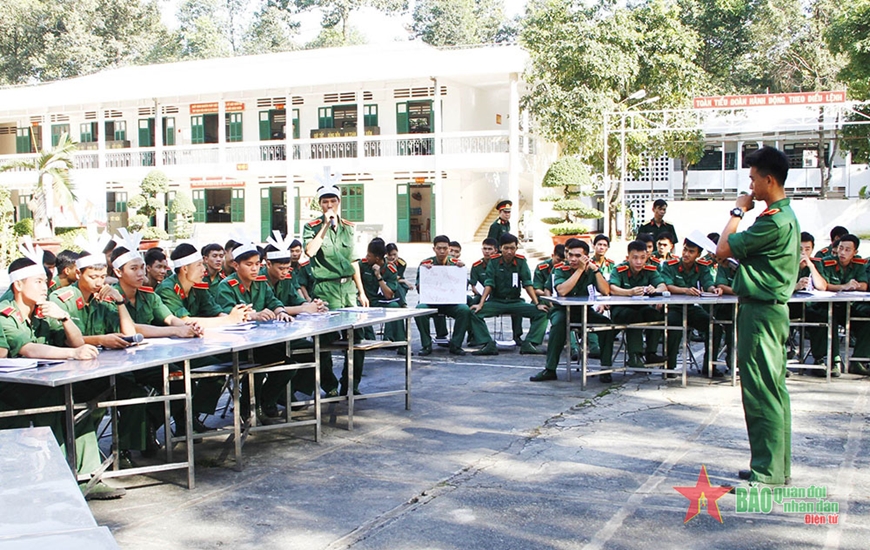 | Học viên Đại đội 2, Tiểu đoàn 9 (Trường Sĩ quan Lục quân 2) sinh hoạt Câu lạc bộ tiếng Anh. |
