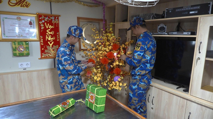 Trong những ngày Tết cổ truyền của dân tộc giữa biển khơi, con tàu được trang trí gọn gàng, trang nghiêm; khu vực thờ Bác Hồ, bàn thờ Tổ quốc được bố trí đúng điều lệnh. Các hoạt động như sinh hoạt chính trị, nghe thư chúc Tết của Chủ tịch nước, các hoạt động văn hóa văn nghệ, giải trí được tổ chức nghiêm túc, đúng thời gian, tạo động lực tinh thần to lớn cho cán bộ, chiến sĩ vừa vui Tết, vừa thực hiện tốt nhiệm vụ được giao.