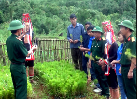 Cán bộ Lâm trường 155 hướng dẫn bà con địa phương trồng thông