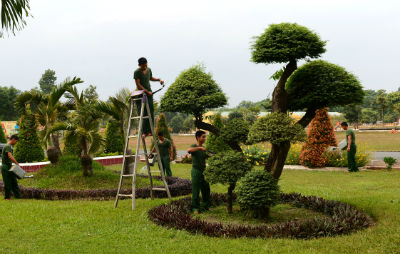 QĐND - Chuẩn bị đón Tết cổ truyền Giáp Ngọ, cán bộ, chiến sĩ Lữ đoàn 434 (Quân đoàn 4) tích cực sơn sửa, tân trang và làm mới nhiều vườn hoa, cây cảnh khu vui chơi cho bộ đội. Tất cả các công việc này đều được tạo dựng từ những đôi tay cần cù, khéo léo, tỉ mỉ của các chiến sĩ.
