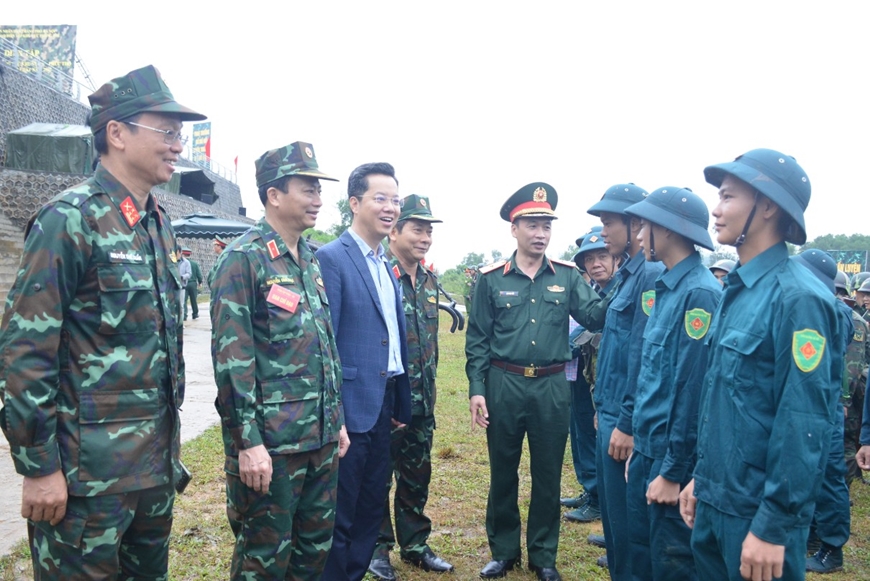 Thủ trưởng Bộ tư lệnh Thủ đô Hà Nội động viên lực lượng dân quân tham gia diễn tập tác chiến phòng thủ khu vực 2-Phúc Thọ và xã Thạch Thất, tháng 11-2025. Ảnh: MẠNH QUANG