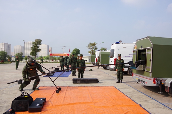 | Đội công binh chống khủng bố của Lữ đoàn Công binh 229, Binh chủng Công binh thực hành kỹ thuật khai thác, sử dụng bàn tay gắp SE-350 trong Hội thao các đội công binh chống khủng bố, năm 2020. |