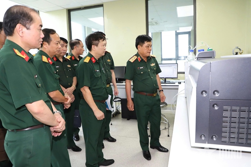 | Lãnh đạo Tổng cục Hậu cần-Kỹ thuật kiểm tra hệ thống trang thiết bị y tế tại Viện Pháp y Quân đội. Ảnh: THANH TÚ |