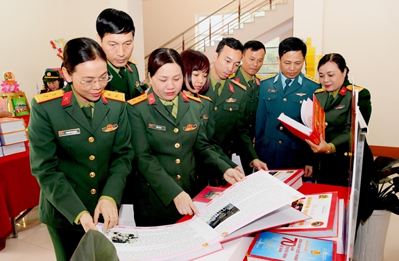 Cán bộ, đoàn viên công đoàn tham quan các sản phẩm thi tìm hiểu “Công đoàn Quốc phòng 70 năm truyền thống vẻ vang” (tháng 3-2019). Ảnh: MINH TRƯỜNG