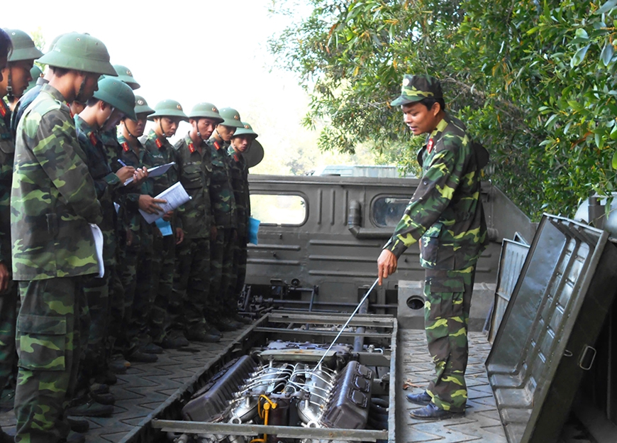 | Tổ chức nội dung huấn luyện xe-máy công binh tại nhà trường. Ảnh: THANH QUỲNH |