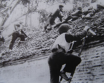 | Chiến sĩ Vệ quốc quân và Tự vệ Thủ đô Hà Nội chiến đấu bảo vệ từng căn nhà, góc phố tháng 12-1946. Ảnh tư liệu. |