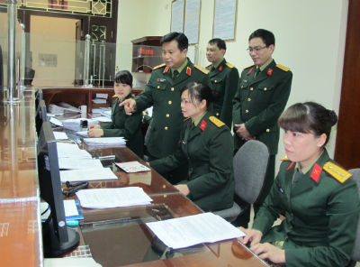 | Thủ trưởng Văn phòng và chỉ huy các cơ quan chức năng trực tiếp chỉ đạo việc soạn thảo các văn bản quan trọng. Ảnh: Nguyên Thắng |