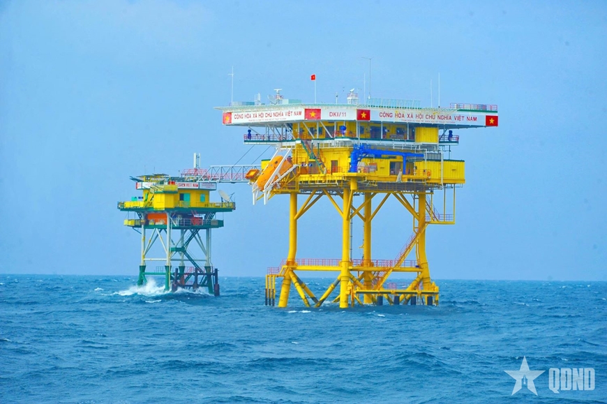| Nhà giàn DK1/11 nằm trên vùng thềm lục địa phía Nam do Vùng 2 Hải quân quản lý. |