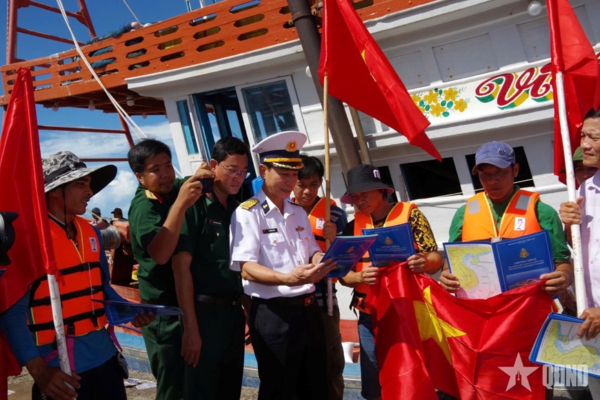 Giữ vững “thế trận lòng dân”, xây dựng điểm tựa vững chắc trên biển. Công tác dân vận, tuyên truyền biển, đảo tiếp tục được đẩy mạnh, góp phần củng cố mối quan hệ đoàn kết quân dân. Với tinh thần “Ngư dân là người thân”, tiếp tục phối hợp chặt chẽ với cấp ủy, chính quyền các địa phương ven biển tổ chức nhiều hoạt động thiết thực như chương trình “Hải quân Việt Nam làm điểm tựa cho ngư dân vươn khơi bám biển”, nhận đỡ đầu con ngư dân, khám, chữa bệnh, tặng quà, hỗ trợ ngư dân phát triển kinh tế biển trên các ngư trường truyền thống. Qua đó, góp phần nâng cao nhận thức cộng đồng về nhiệm vụ bảo vệ chủ quyền biển, đảo; củng cố thế trận quốc phòng toàn dân gắn với thế trận an ninh nhân dân trên biển, lan tỏa hình ảnh Bộ đội Cụ Hồ - người chiến sĩ Hải quân trong thời kỳ mới.