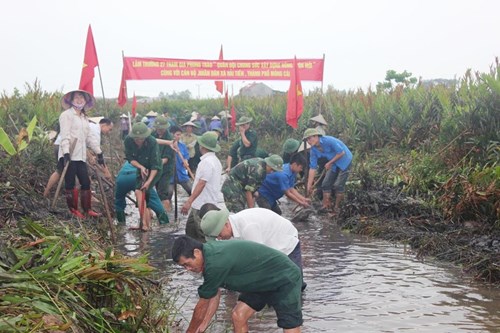 Cán bộ, nhân viên Lâm trường 27 tham gia nạo vét kênh mương tại xã Hải Tiến, TP Móng Cái.