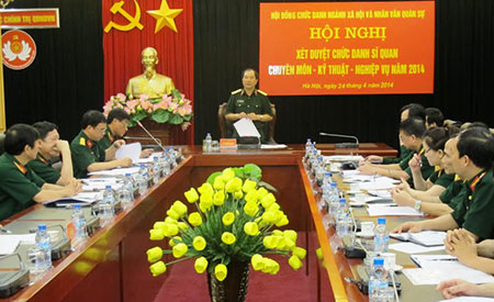 Ngày 24-4, Hội đồng chức danh sĩ quan Ngành xã hội và nhân văn quân sự (XH&NVQS) đã tổ chức hội nghị xét duyệt chức danh sĩ quan chuyên môn - kỹ thuật - nghiệp vụ năm 2014. Trung tướng Mai Quang Phấn, Ủy viên Trung ương Đảng, Phó Chủ nhiệm Tổng cục Chính trị, Chủ tịch Hội đồng xét duyệt, nâng ngạch và bãi miễn chức danh sĩ quan chuyên môn - kỹ thuật - nghiệp vụ Ngành XH&NVQS chủ trì.