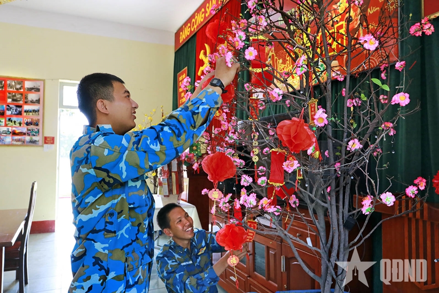 Những ngày này, Trung úy Lê Quang Huy luôn bận rộn với các hoạt động ngày Tết của đơn vị. Vừa tổ chức các hoạt động ngoài trời, Huy lại cùng đội ngũ cán bộ chuẩn bị cho các hoạt động văn hóa, văn nghệ của cán bộ, chiến sĩ. “Ngay sau khi nhận được kế hoạch Chương trình “Xuân canh trời - Thắm tình quân dân” và Tết trồng cây “Đời đời nhớ ơn Bác Hồ” từ Trung đoàn, đơn vị nhanh chóng tổ chức xây dựng kế hoạch, quán triệt, triển khai và tiến hành trang trí đón Tết, cắm cờ xung quanh đơn vị, củng cố hệ thống bồn hoa, cây cảnh, các pano, bảng ảnh trước cổng và ở sân khấu…; phối hợp với chi đoàn kết nghĩa tổ chức các hoạt động vui chơi giải trí trong dịp Tết nhằm tạo không khí vui tươi phấn khởi cho bộ đội”, Huy hồ hởi giới thiệu.