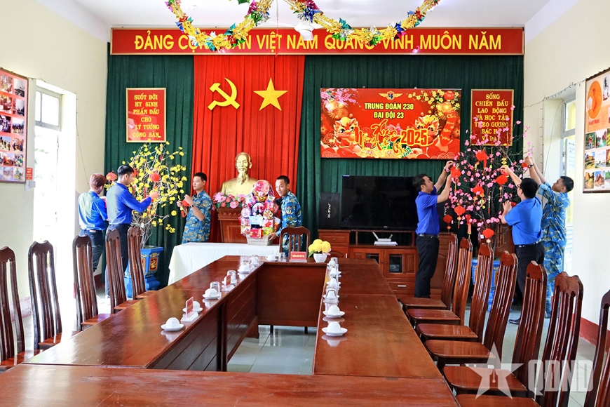 Là đơn vị thực hiện nhiệm vụ trực ban sẵn sàng chiến đấu tăng cường trong dịp Tết Nguyên đán Ất Tỵ 2025, Đại đội 23, Trung đoàn 230 đã tổ chức chuẩn bị chu đáo mọi mặt cho nhiệm vụ "Xuân canh trời".