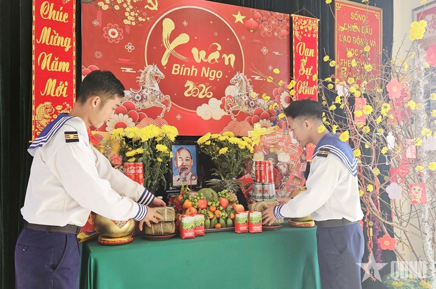 | Chiến sĩ Trạm Radar 610, Trung đoàn 551, Vùng 5 Hải quân trang trí đón xuân sớm. |