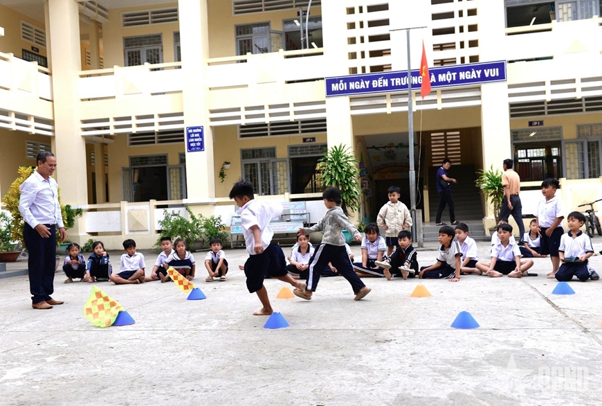 | Các cháu học sinh Trường Tiểu học và THCS Thổ Châu trong giờ học. |
