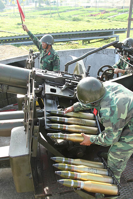 Tới vị trí trực chiến của Tiểu đoàn 3, không khí luyện tập vô cùng nhộn nhịp. Khẩu đội trưởng Nguyễn Trần Ngọc Thắng hô vang khẩu lệnh: “Khẩu đội chú ý! Mục tiêu xuất hiện, số 2, chiếc đầu, tốc độ 180, điểm xạ ngắn, chuẩn bị bắn…”. Từng pháo thủ nhanh chóng thao tác thuần thục, chuẩn xác, căng mắt theo dõi phần tử bắn; không một động tác thừa, chỉ có tiếng báo cáo phần tử bắn, kết quả “bắt tiêu” và tiếng nạp đạn lách cách… Hoàn thành ca trực an toàn, Thắng tâm sự: