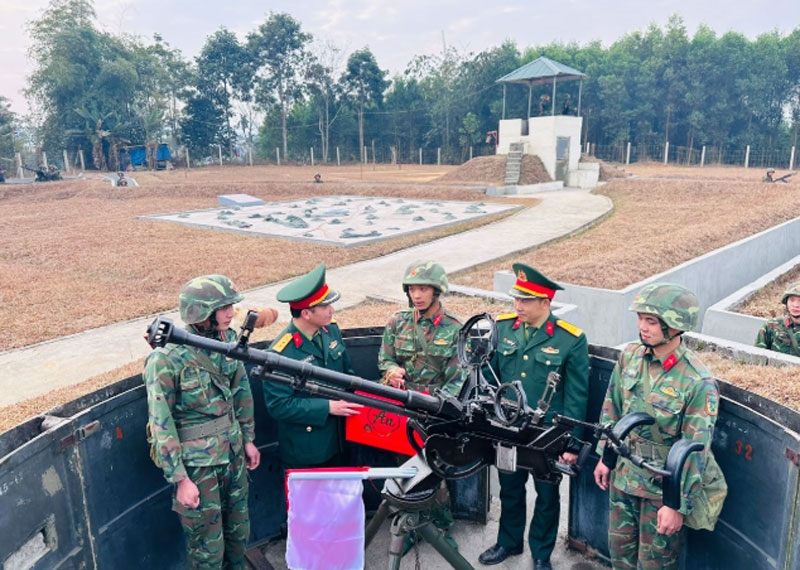 | Chỉ huy đơn vị thăm, tặng quà các kíp trực sẵn sàng chiến đấu trong những ngày Tết. |