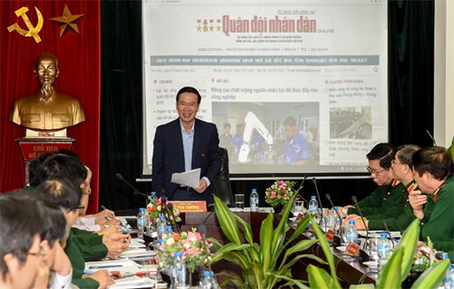 Phát biểu chỉ đạo, đồng chí Võ Văn Thưởng bày tỏ vui mừng khi đến thăm, làm việc với tờ báo có truyền thống hào hùng, gắn liền với quá trình xây dựng, chiến đấu, phát triển của QĐND Việt Nam. Tờ báo là “mái nhà” của những người vừa làm báo, vừa đánh giặc, vừa kiến thiết, xây dựng đất nước. Theo đó, từ một tờ báo in ban đầu, đến nay Báo QĐND đã có sự phát triển mạnh mẽ, có nhiều ấn phẩm quan trọng đáp ứng yêu cầu nhiệm vụ không chỉ của quân đội mà còn của Đảng, Nhà nước. Đồng chí Võ Văn Thưởng khẳng định: Báo QĐND là một trong những tờ báo chủ lực của Đảng, Nhà nước hiện nay-là cơ quan báo chí đa phương tiện có vị trí chủ lực. Trong quân đội, Báo QĐND cùng nhiều cơ quan báo chí khác đã tạo thành một binh chủng trong công tác tư tưởng, văn hóa của Đảng. Tờ báo còn là địa chỉ tin cậy, uy tín với lãnh đạo Đảng, Nhà nước, Quân đội và bạn đọc cả nước-là nơi kiểm định, kiểm chứng thông tin trước diễn biến mau lẹ của tình hình và sự đan xen, phức tạp của thông tin hiện nay.