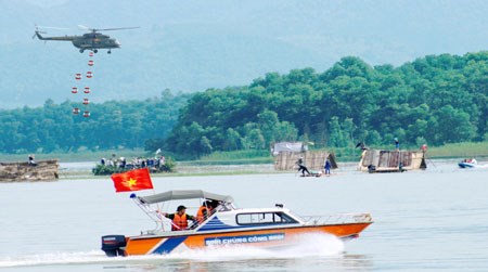Diễn tập cứu hộ cứu nạn hiệp đồng quân binh chủng do Binh chủng Công binh đăng cai tổ chức. Ảnh: MẠNH HÀ