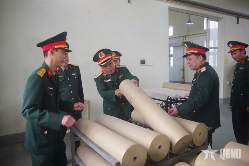 Trung tướng Trần Minh Đức, Chủ nhiệm Tổng cục Hậu cần - Kỹ thuật kiểm tra các sản phẩm của Xưởng X265.
