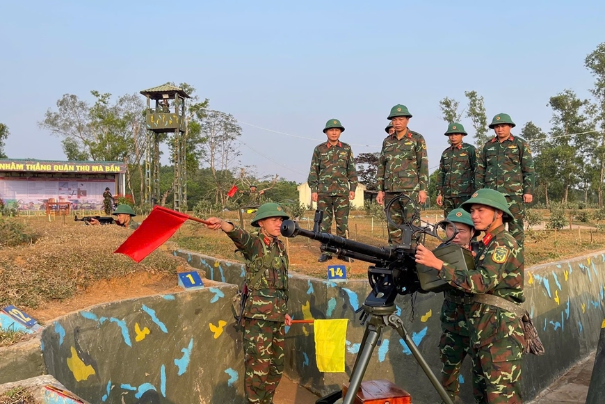 | Phân đội súng máy 12,7mm luyện tập phương án bảo vệ mục tiêu trên không. |