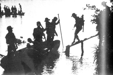Bộ đội Tiểu đoàn Tây Đô vượt sông Cần Thơ tiến công thị xã Cần Thơ trong Tổng tiến công và nổi dậy Xuân 1968. Ảnh tư liệu. |