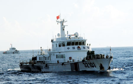 | Tàu Trung Quốc cố tình ngăn cản lực lượng làm nhiệm vụ bảo vệ chủ quyền, quyền tài phán của Việt Nam tại vùng biển Hoàng Sa. Ảnh: Mạnh Thắng. |
