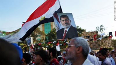Những người ủng hộ ông M. Mơ-xi trong một cuộc biểu tình tại Cai-rô. Ảnh: CNN
