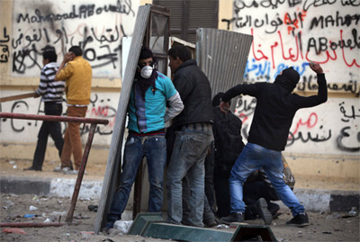 Chú thích ảnh: Những người biểu tình đụng độ với lực lượng cảnh sát Ai Cập vào ngày 25-1.