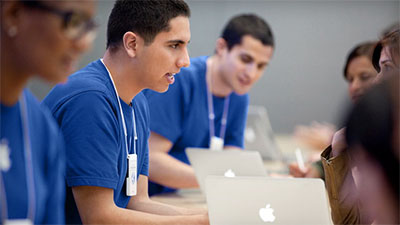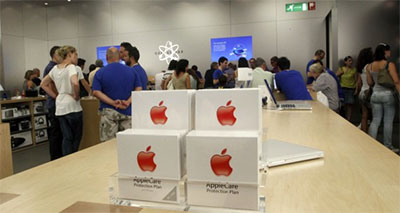 Các nhân viên của Apple tại Mi-lan tư vấn sản phẩm cho khách hàng. Ảnh: gizmodo.co.uk