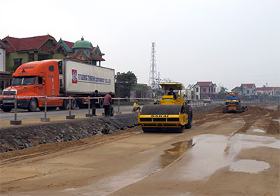Giải phóng mặt bằng chậm trễ sẽ ảnh hưởng trực tiếp đến tiến độ dự án mở rộng QL1. Trong ảnh: Thi công mở rộng QL1 qua địa phận tỉnh Quảng Bình.
