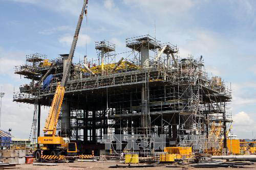 Tổng Công ty Cổ phần Dịch vụ Kỹ thuật Dầu khí - PTSC (Tập đoàn Dầu khí Quốc gia Việt Nam) đã đủ sức đóng gian khoan phục vụ công nghiệp khai thác dầu khí. Trong ảnh: Đóng mới giàn khoan Hải Sư Trắng.
