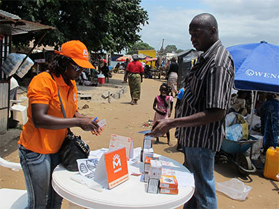 Nhân viên của Movitel (thương hiệu của Viettel tại Mô -dăm-bích) đang bán hàng tại một khu chợ nông thôn. Ảnh: Hồ Quang Phương