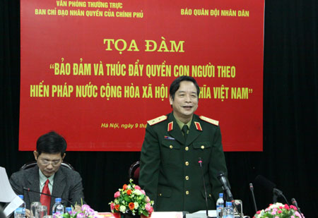 QĐND Online – Đó là chủ đề buổi tọa đàm, do Văn phòng thường trực Ban chỉ đạo nhân quyền của Chính phủ và Báo Quân đội nhân dân (QĐND) phối hợp tổ chức sáng 9-12 tại Hà Nội. Trung tướng Lê Phúc Nguyên, Tổng biên tập Báo QĐND và đồng chí Lê Đình Luyện, Chánh Văn phòng thường trực Ban chỉ đạo nhân quyền của Chính phủ, đồng chủ trì tọa đàm. ..