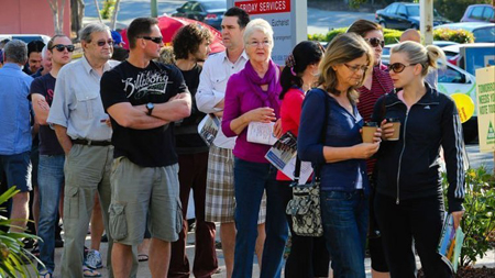 Người dân Ô-xtrây-li-a xếp hàng bỏ phiếu ngày 7-9. Ảnh: AFP