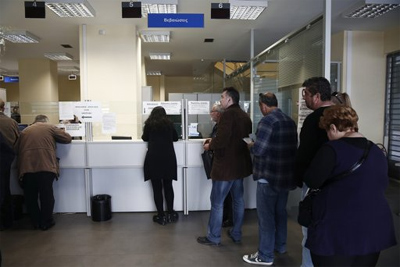 Người thất nghiệp đăng ký tìm việc làm tại Tổ chức nhân sự việc làm Hy Lạp (OAED) tại thủ đô A-ten. Ảnh: Roi-tơ