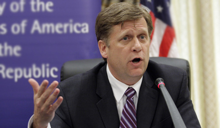 QĐND - Mới chân ướt, chân ráo tới Mát-xcơ-va nhưng tân Đại sứ Mỹ tại Nga, ông Mai-cơn Mác-phôn (Michael McFaul), đã “chọc giận” báo chí nước sở tại sau khi ông tiến hành nhiều cuộc gặp kín với các thủ lĩnh đối lập Nga. Mặc dù sau đó ông đã lên tiếng biện minh nhưng xem ra nhiệm kỳ Đại sứ trước mắt của ông không hề dễ dàng.