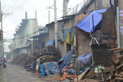 | Một cơ sở ép gỗ gây ô nhiễm tại phường Đông Hưng Thuận, quận 12, TP Hồ Chí Minh. |