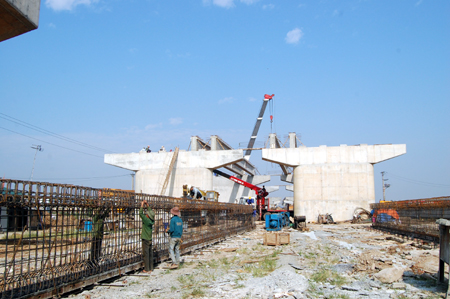 Cách đây một năm, việc có mặt bằng thi công cầu vượt đường sắt và đường bộ, thuộc gói thầu PK1A của dự án, từng là một bài toán nan giải. Tại nhiều điểm, nhà thầu đã không thể đưa máy móc, thiết bị vào thi công do nhà dân chắn cả hai đầu. Đến nay, sau nhiều nỗ lực để giải phóng mặt bằng, cây cầu đang bắt đầu định hình. Nhà thầu đang thi công trụ cầu cuối cùng trong số 13 trụ sau khi được bàn giao mặt bằng từ tháng 8-2012. “Đây là một trong hai cầu dài nhất trên tuyến, ngay khi nhận mặt bằng, nhà thầu đã nhanh chóng tổ chức thi công để bám sát tiến độ. Ngoài hoàn thành trụ, mố cầu, việc lao lắp dầm đang khẩn trương tiến hành với 3 bãi đúc dầm, mỗi tháng đúc được 20-22 phiến dầm. Dự kiến cầu sẽ hoàn thiện toàn bộ vào cuối tháng 4 năm sau”, ông Nguyễn Mạnh Hà, Phó trưởng Phòng Điều hành dự án PID5 thuộc Ban Quản lý dự án 2 (PMU 2) cho biết.