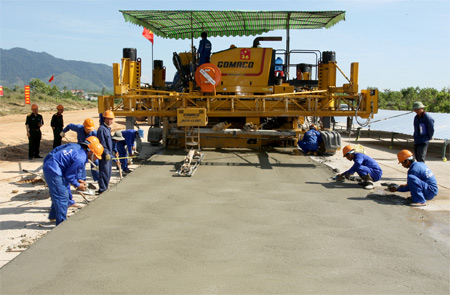 Nhờ thực hiện tái cơ cấu, Tổng công ty 36 (Bộ Quốc phòng) đã phát triển bền vững trong năm 2013. Trong ảnh: Lực lượng thi công của Tổng công ty tại công trường xây dựng đường Đông Trường Sơn. Ảnh: Quang Thái