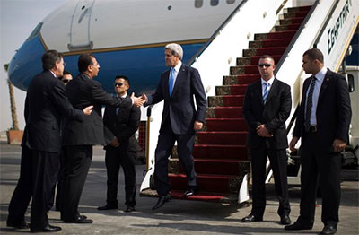 QĐND - Ngày 3-11, Ngoại trưởng Mỹ Giôn Ke-ri (John Kerry) đã đặt chân tới Ai Cập, quốc gia đầu tiên trong chuyến công du dài ngày của ông tại khu vực Trung Đông và Bắc Phi. Chuyến thăm được xem là một nỗ lực hàn gắn mối quan hệ đang ngày càng rạn nứt của Mỹ với Ai Cập - quốc gia đồng minh chủ chốt của Mỹ tại khu vực.