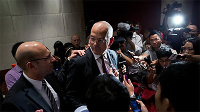 Giám đốc điều hành Tập đoàn sữa Fonterra Thê-ô Xpai-rinh trong cuộc họp báo tại Trung Quốc. Nguồn: AP