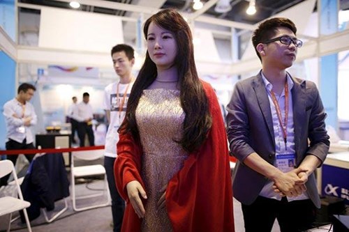 Rô-bốt Trung Quốc sở hữu trí thông minh nhân tạo được trưng bày tại Hội chợ Công nghệ quốc tế 2016 tổ chức tại Thượng Hải. Ảnh: China Daily