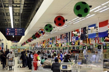 Một siêu thị tại trung tâm mua sắm Maponya của Xô-uê-tô, Nam Phi. Ảnh: AFP