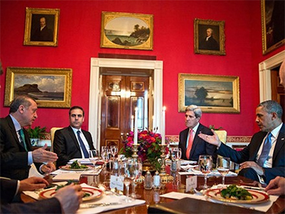 Giám đốc Cơ quan tình báo Thổ Nhĩ Kỳ H.Phi-đan (thứ hai từ bên trái) trong một cuộc gặp với giới chức Mỹ tại Nhà Trắng. Ảnh: debka.com