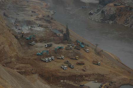 Khí thế ra quân sôi nổi đầu năm 2012 của Tổng công ty xây dựng Trường Sơn (Bộ Quốc phòng) trên công trường xây dựng Nhà máy thủy điện Lai Châu. Ảnh: Phạm Văn Nên
