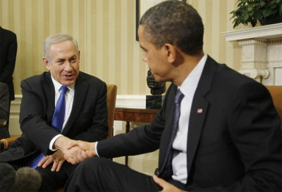 | Trong cuộc gặp Tổng thống Ô-ba-ma tại Nhà trắng ngày 5-3, Thủ tướng Nê-ta-ni-a-hu (bên trái) khẳng định không sớm thì muộn, I-xra-en cũng tấn công I-ran. Ảnh: Roi-tơ |